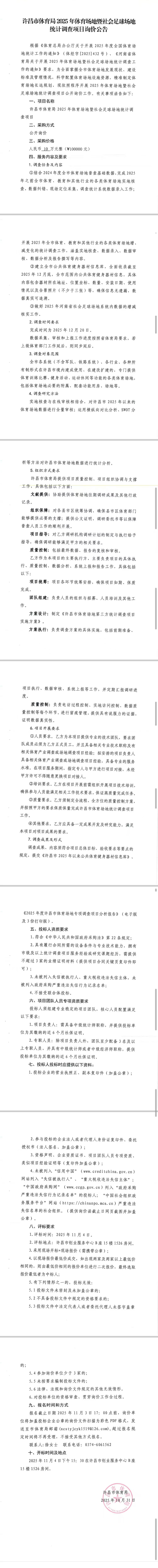 许昌市体育局2025年体育场地社会足球场地统计调查项目询价公告